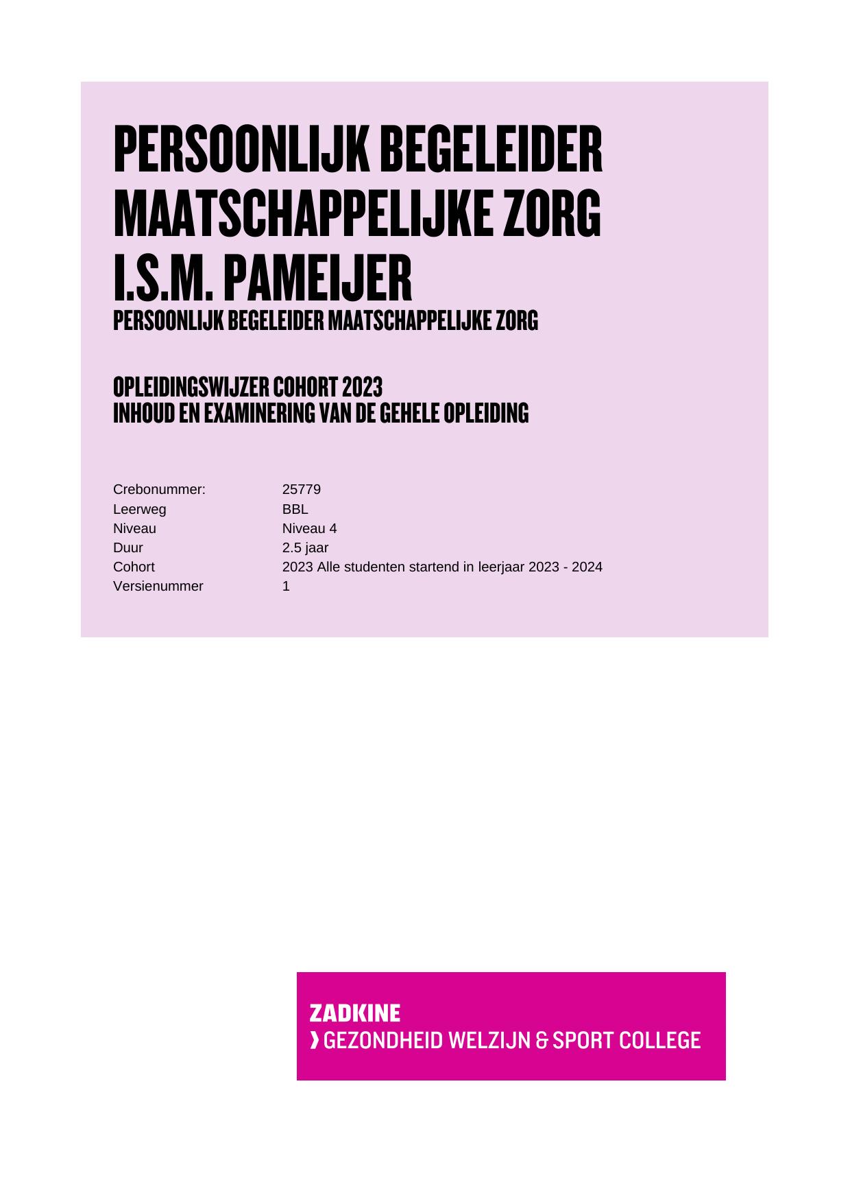 Persoonlijk begeleider maatschappelijke zorg 25779PAMBBL in cohort 2023-2024