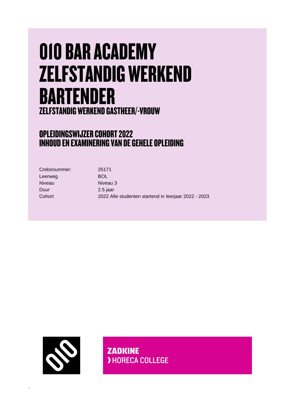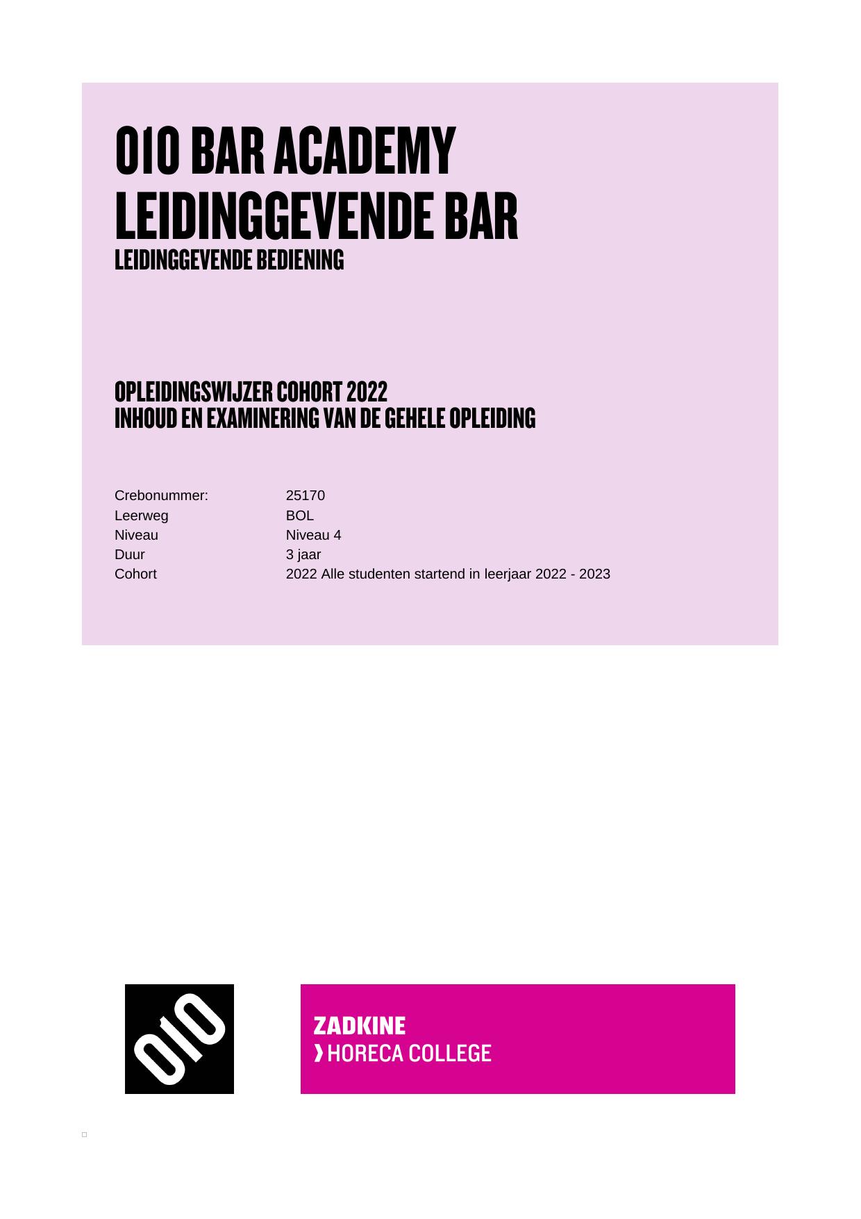 Leidinggevende bediening 25170BOL010 in cohort 2022-2023