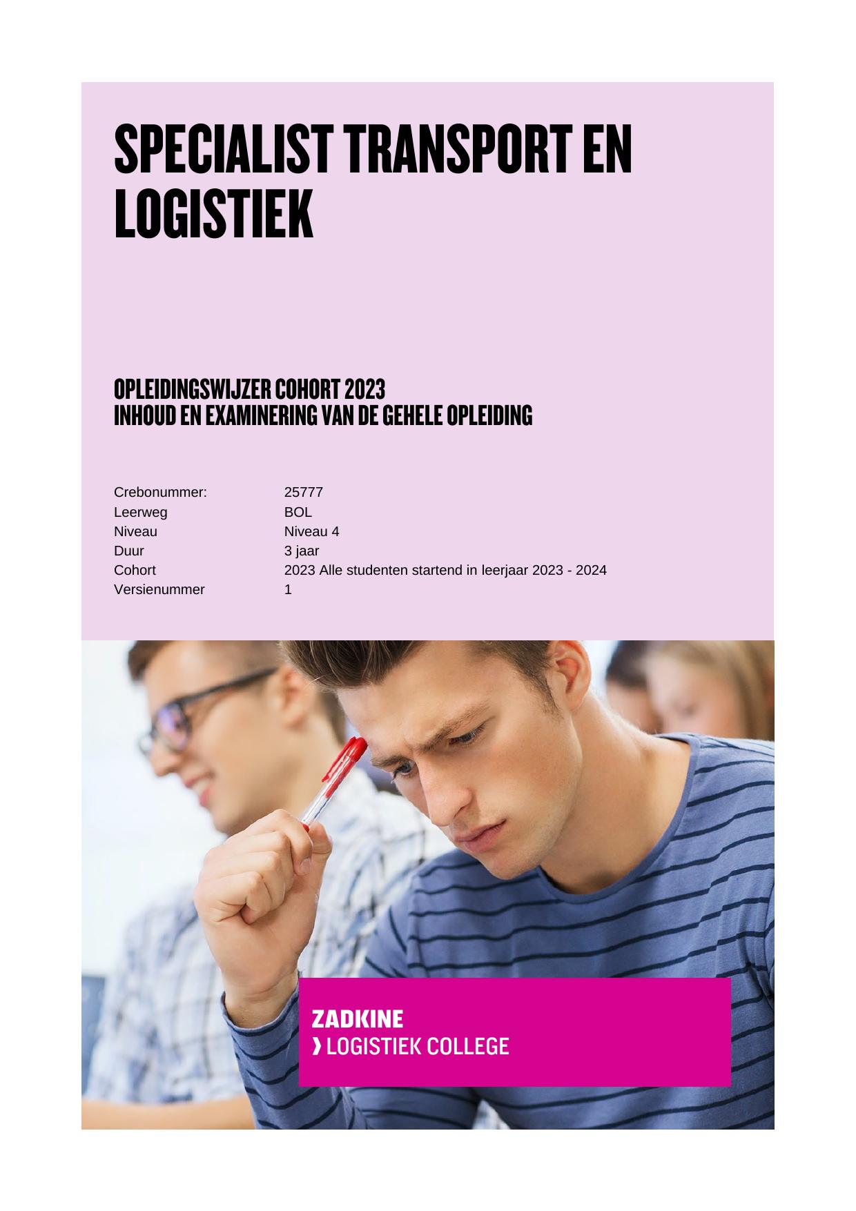 Specialist transport en logistiek 25777BOL in cohort 2023-2024