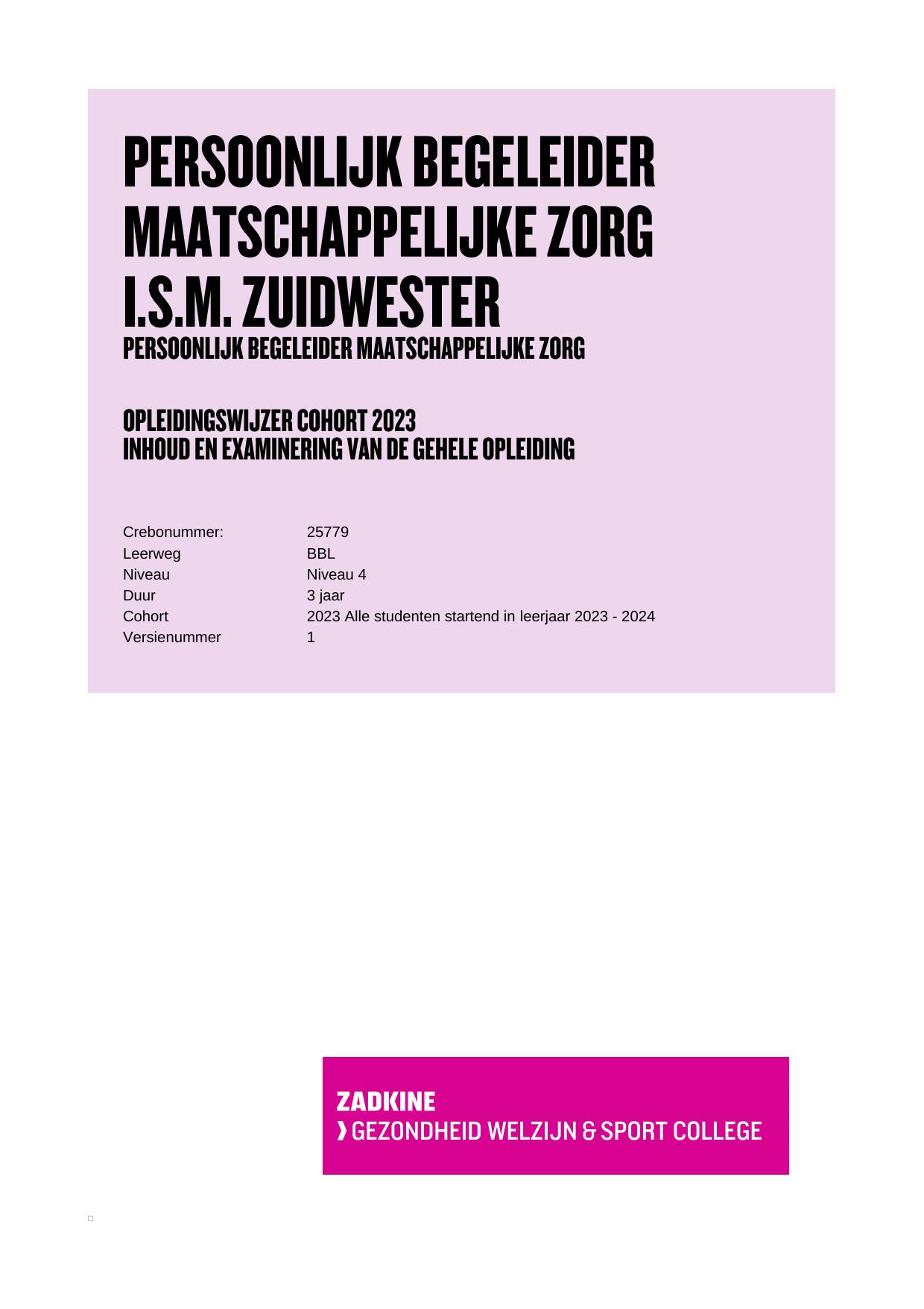 Persoonlijk begeleider maatschappelijke zorg 25779ZWNIV4BBL in cohort 2023-2024