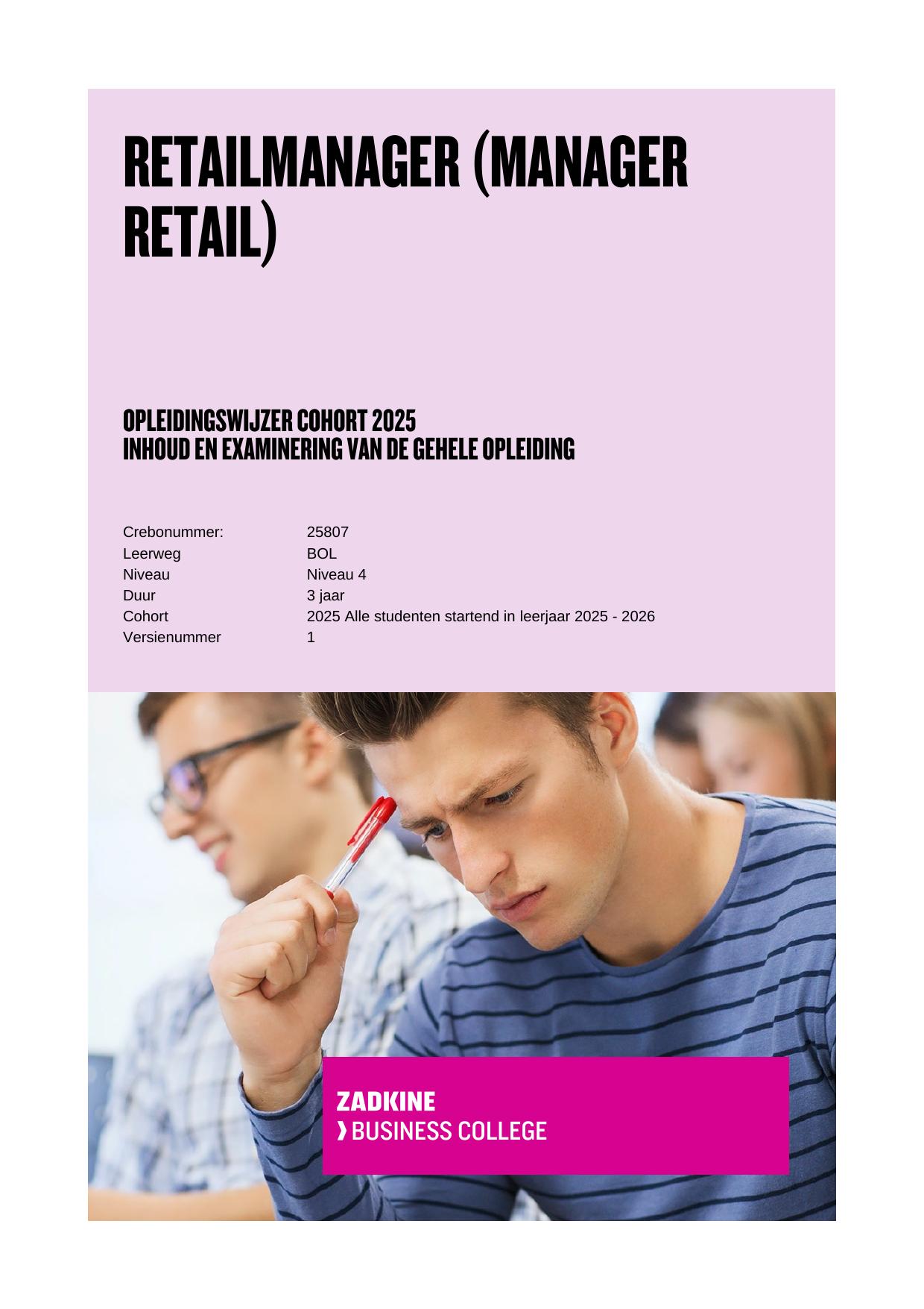 Retailmanager (Manager Retail) 25807BOLBHP in cohort 2025-2026