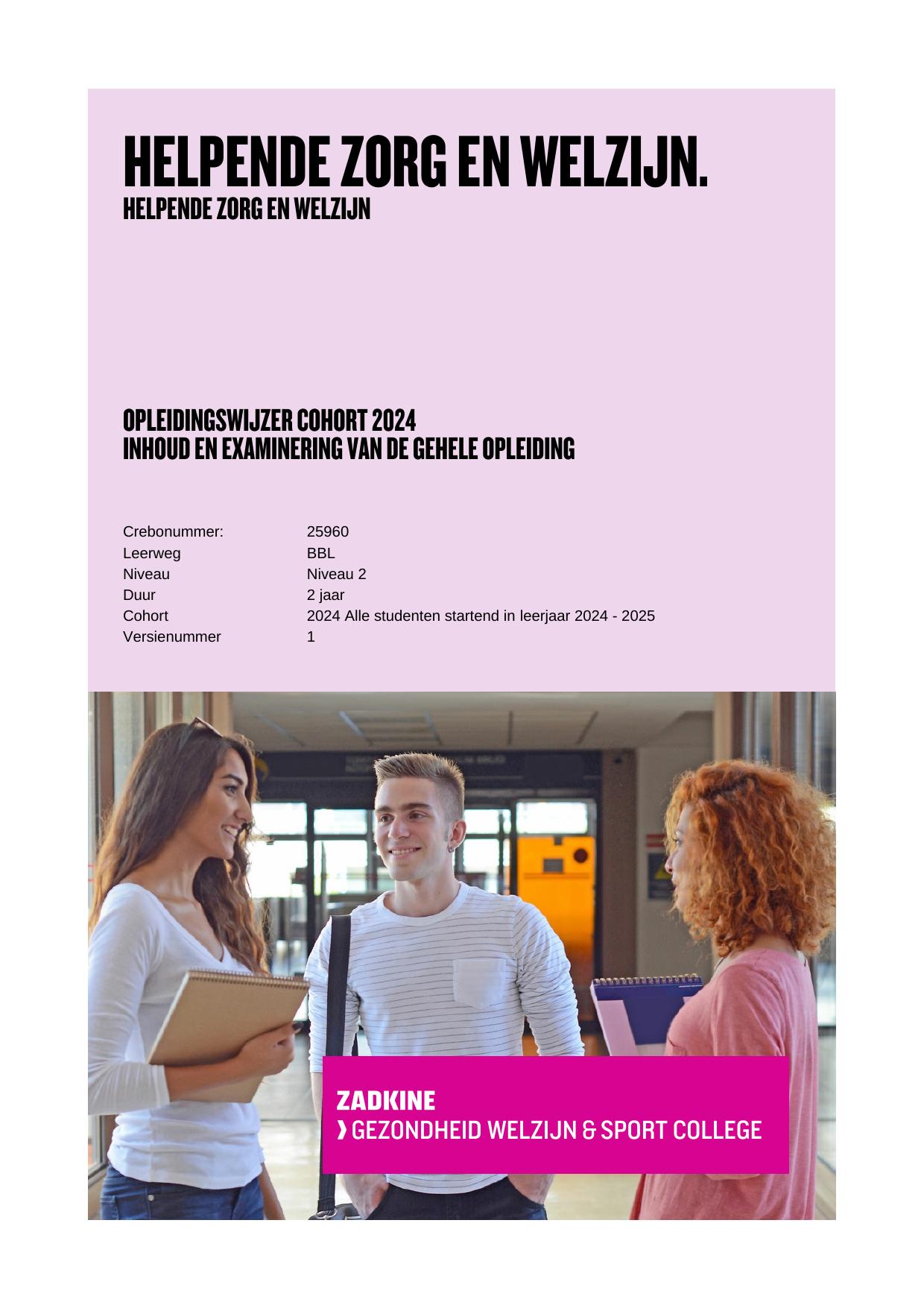 Helpende Zorg en Welzijn 25960BBLSPL in cohort 2024-2025