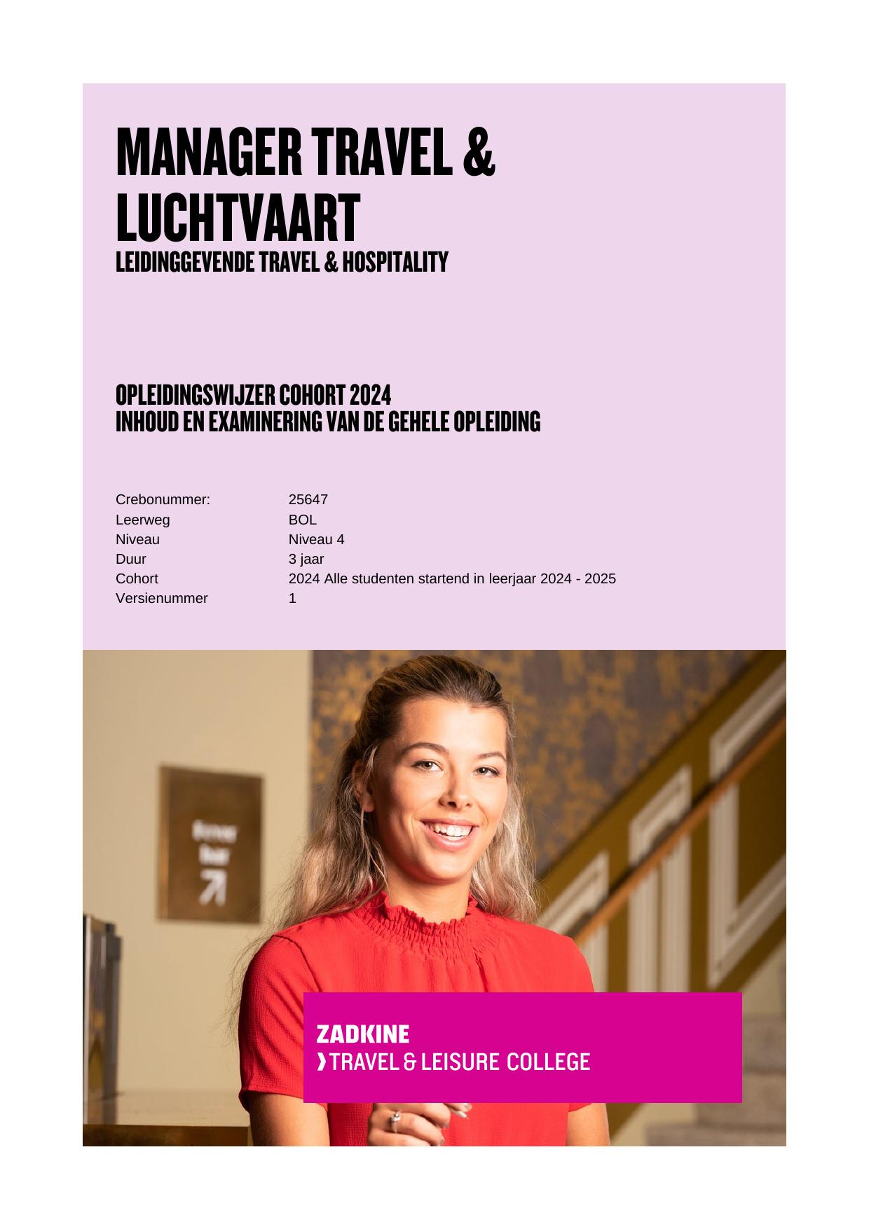 Leidinggevende travel & hospitality 25647BOL in cohort 2024-2025