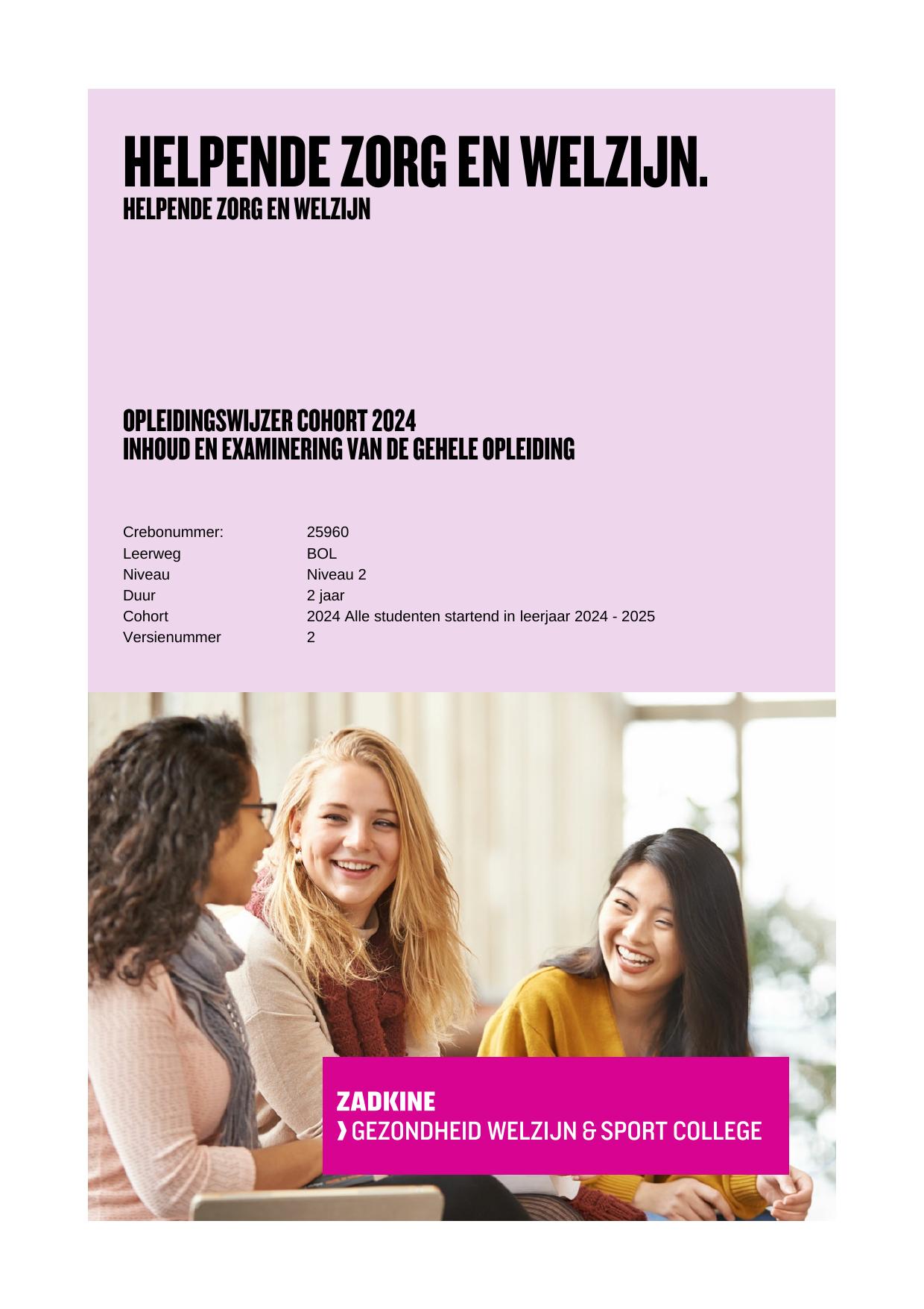 Helpende Zorg en Welzijn 25960BOLSPL in cohort 2024-2025