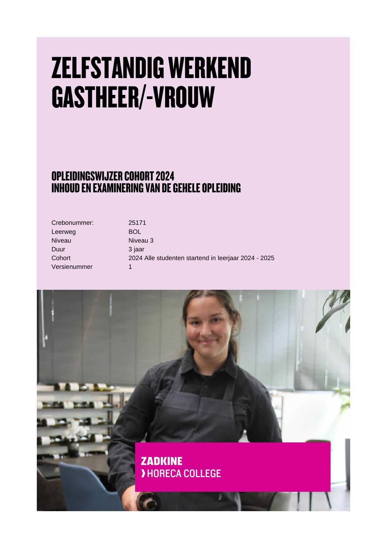 Zelfstandig werkend gastheer/-vrouw 25171BOL in cohort 2024-2025