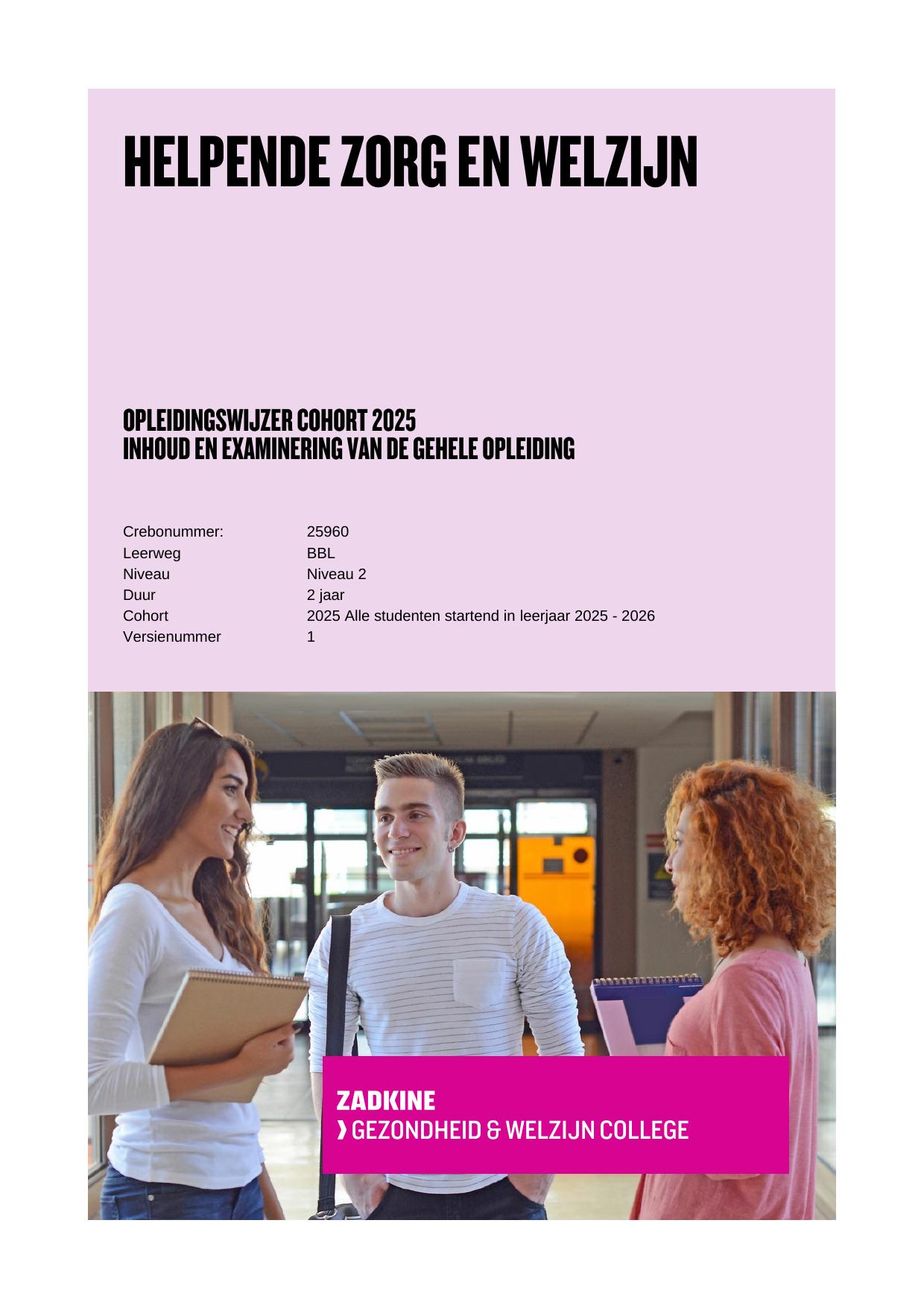 Helpende Zorg en Welzijn 25960BBLBHP in cohort 2025-2026